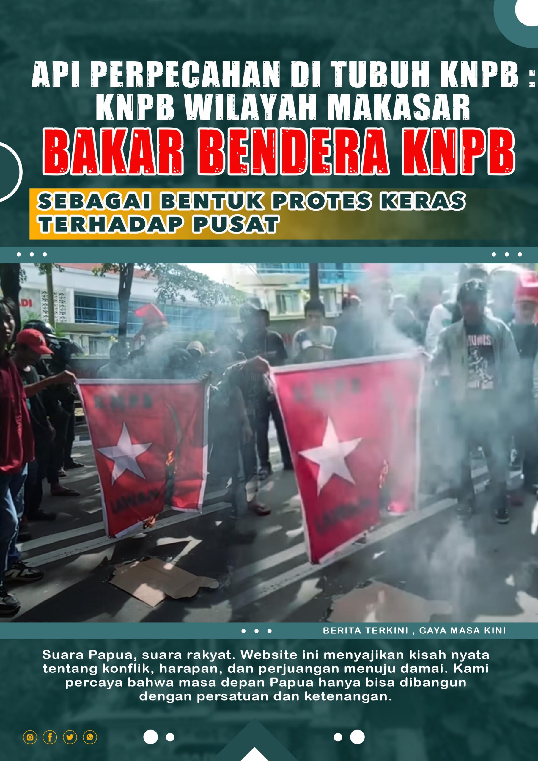 buletinjubi.com – Makassar — Konflik internal Komite Nasional Papua Barat (KNPB) semakin terbuka ke publik setelah KNPB Wilayah Makassar melakukan aksi pembakaran bendera organisasi sebagai bentuk protes keras terhadap kepemimpinan KNPB Pusat. Aksi simbolik ini mencerminkan kekecewaan mendalam terhadap arah organisasi, kebijakan pusat, serta dugaan tidak adanya ruang aspirasi bagi wilayah.