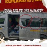 buletinjubi.com – Timika, Papua Tengah — Insiden pecahnya kaca minibus milik Industrial