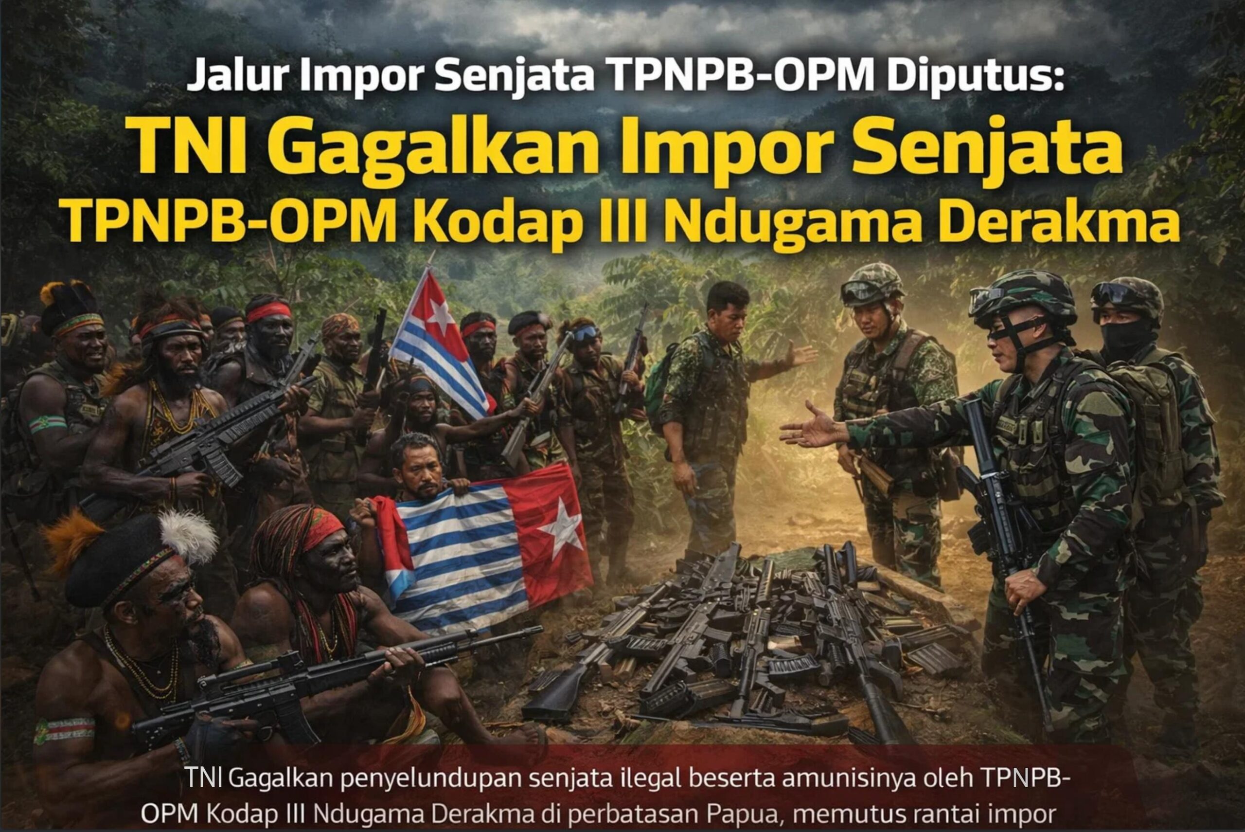 Namun, langkah tersebut berhasil digagalkan aparat TNI. Melalui operasi pengamanan perbatasan dan patroli intelijen berlapis, jalur logistik ilegal yang selama ini dimanfaatkan TPNPB-OPM berhasil diputus. Sejumlah senjata dan perlengkapan tempur yang diduga berasal dari luar negeri diamankan, sekaligus mematahkan rantai suplai yang menjadi urat nadi kekuatan kelompok bersenjata itu.