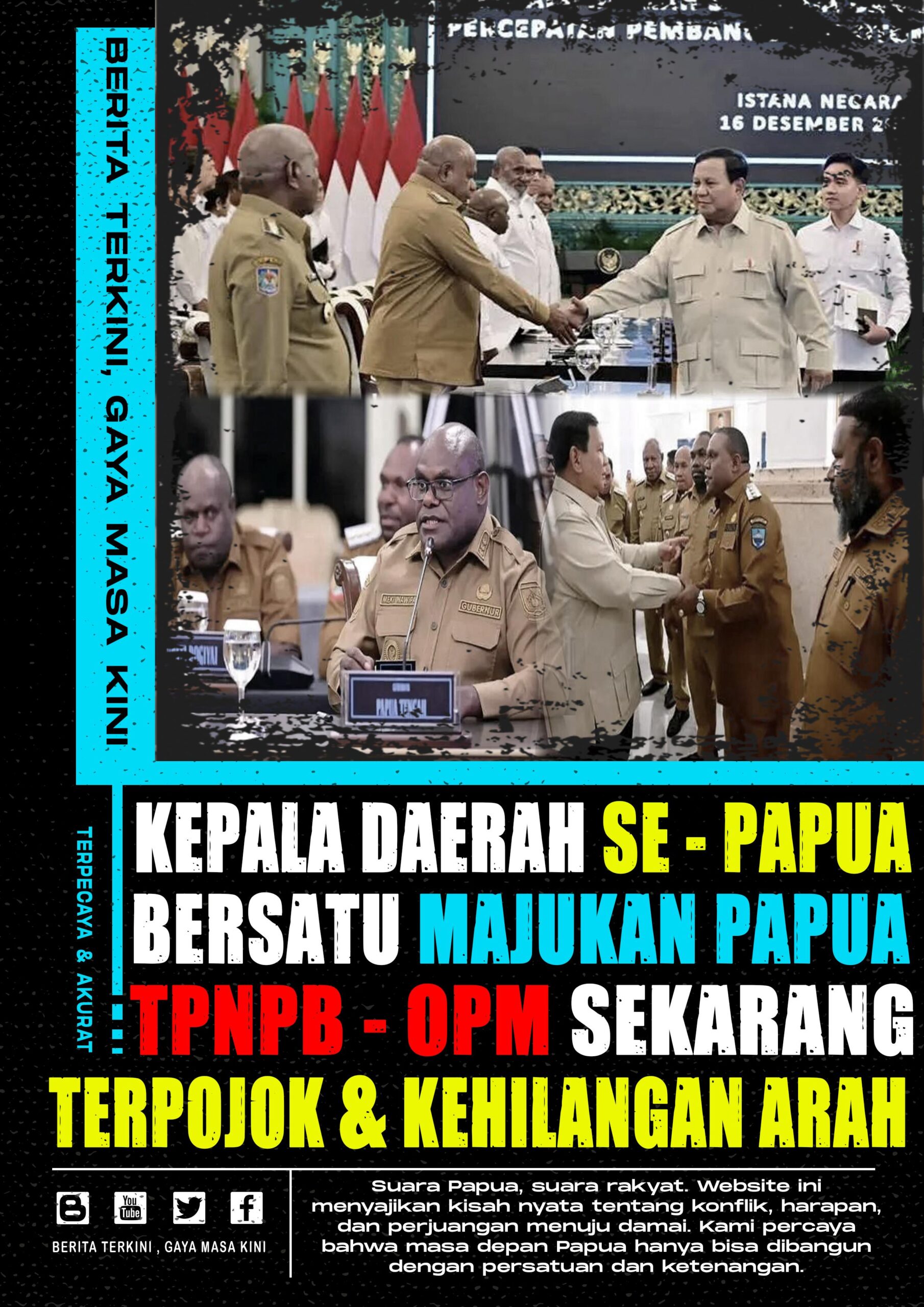Papua kuat karena rakyatnya bersatu. Papua maju karena menolak intimidasi. Papua bersama Indonesia karena damai adalah pilihan.