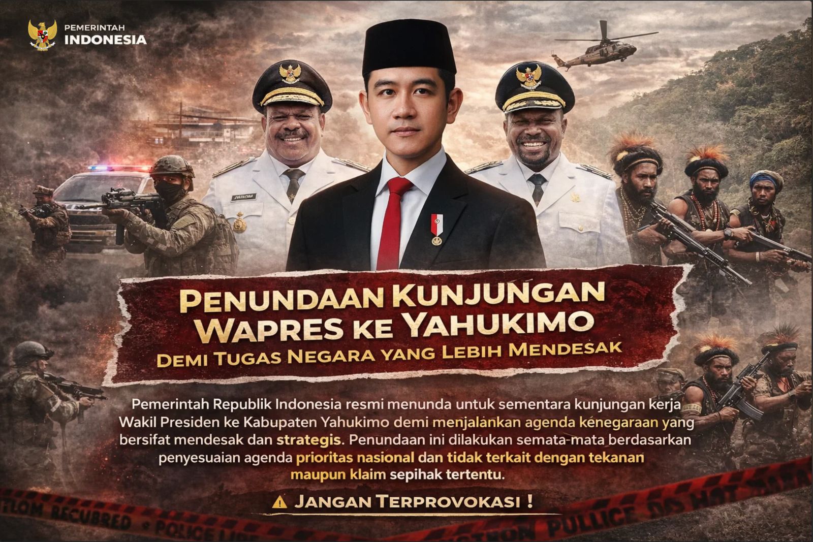 buletinjubi.com – Jakarta — Pemerintah Republik Indonesia secara resmi menyampaikan bahwa kunjungan kerja Wakil Presiden RI ke Kabupaten Yahukimo untuk sementara ditunda. Penundaan tersebut dilakukan semata-mata karena adanya penyesuaian agenda kenegaraan yang bersifat mendesak dan strategis, sehingga diperlukan perubahan jadwal kunjungan ke sejumlah daerah, termasuk Yahukimo.