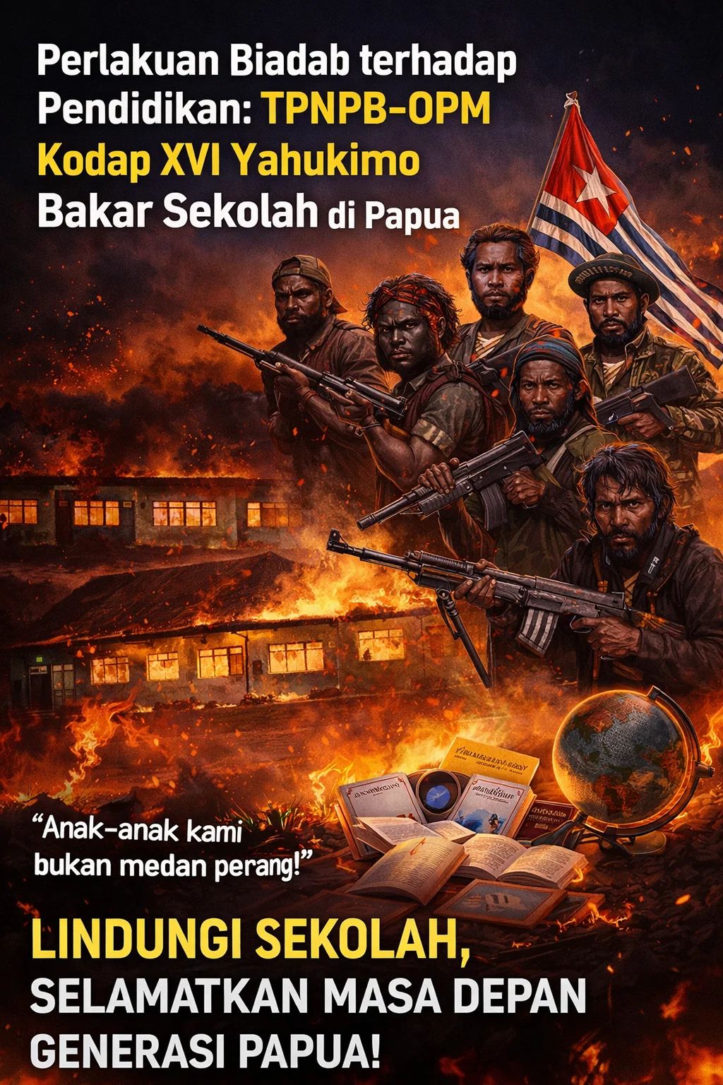 buletinjubi.com – Yahukimo, Papua Pegunungan — Sebuah seruan yang mengguncang nurani publik mencuat setelah beredarnya pernyataan resmi kelompok TPNPB-OPM Kodap XVI Yahukimo yang membakar sekolah-sekolah di Papua. Ancaman tersebut diarahkan kepada lembaga pendidikan yang mengajarkan kurikulum nasional, termasuk Pancasila, dan dinilai sebagai upaya terang-terangan menebar teror terhadap anak-anak, guru, serta masa depan generasi Papua.