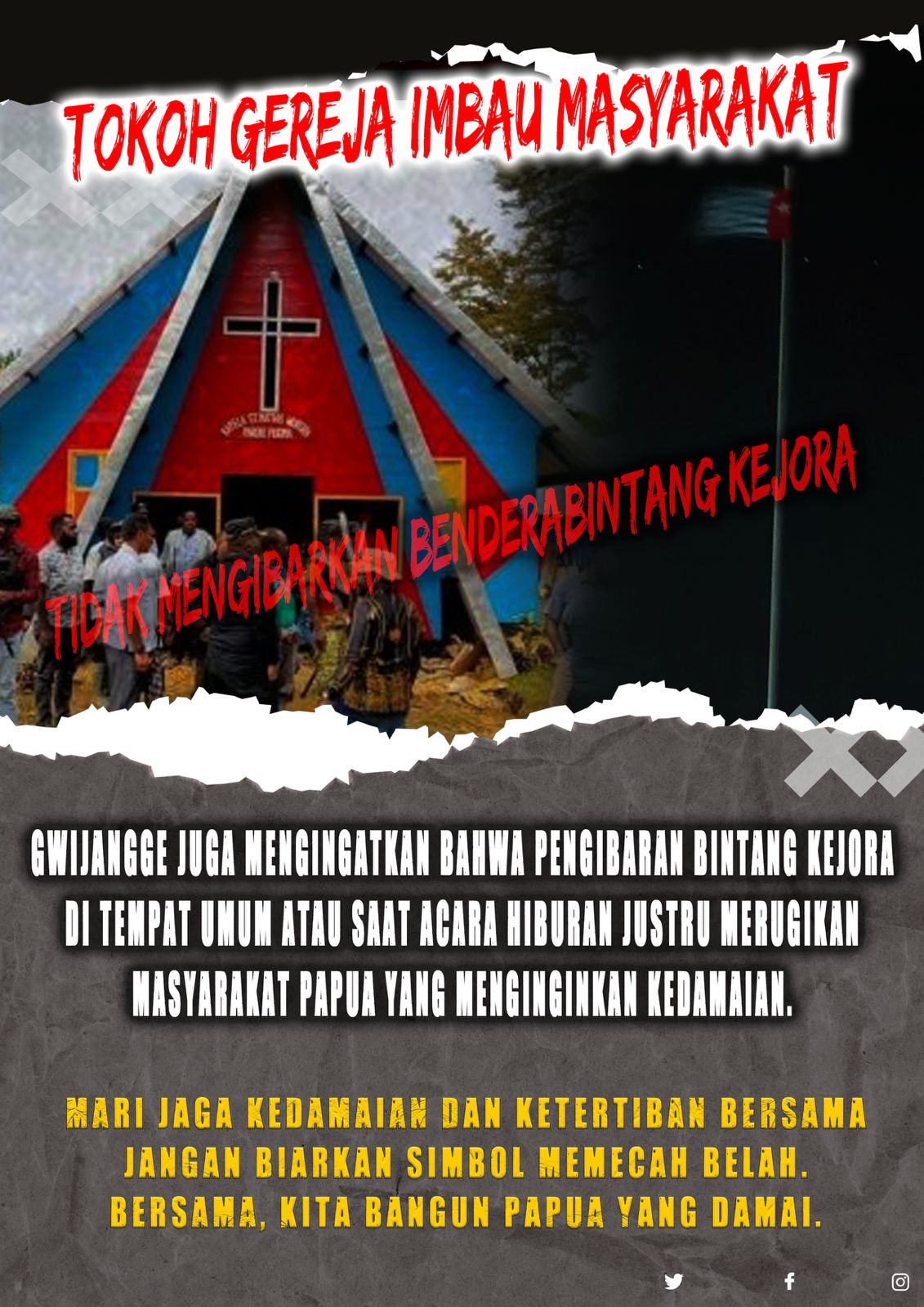 Gwijangge menegaskan bahwa perjuangan dan aspirasi masyarakat Papua dapat disampaikan melalui cara-cara damai seperti musik, kajian, diskusi, dan kegiatan sosial. Ia menilai penggunaan simbol yang berpotensi memunculkan ketegangan hanya akan merugikan masyarakat Papua yang menginginkan kedamaian.